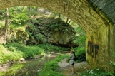 Pod dobronickým hradem, most v Bechyni i s vlakem, skalní tunel z roku 38, kamenný most v Židově rokli