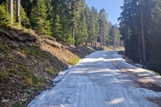 Přejezd silnice u Cínovce, chata Mikulka, zapomenutá sjezdovka pod Vitiškou a hrázděný domek